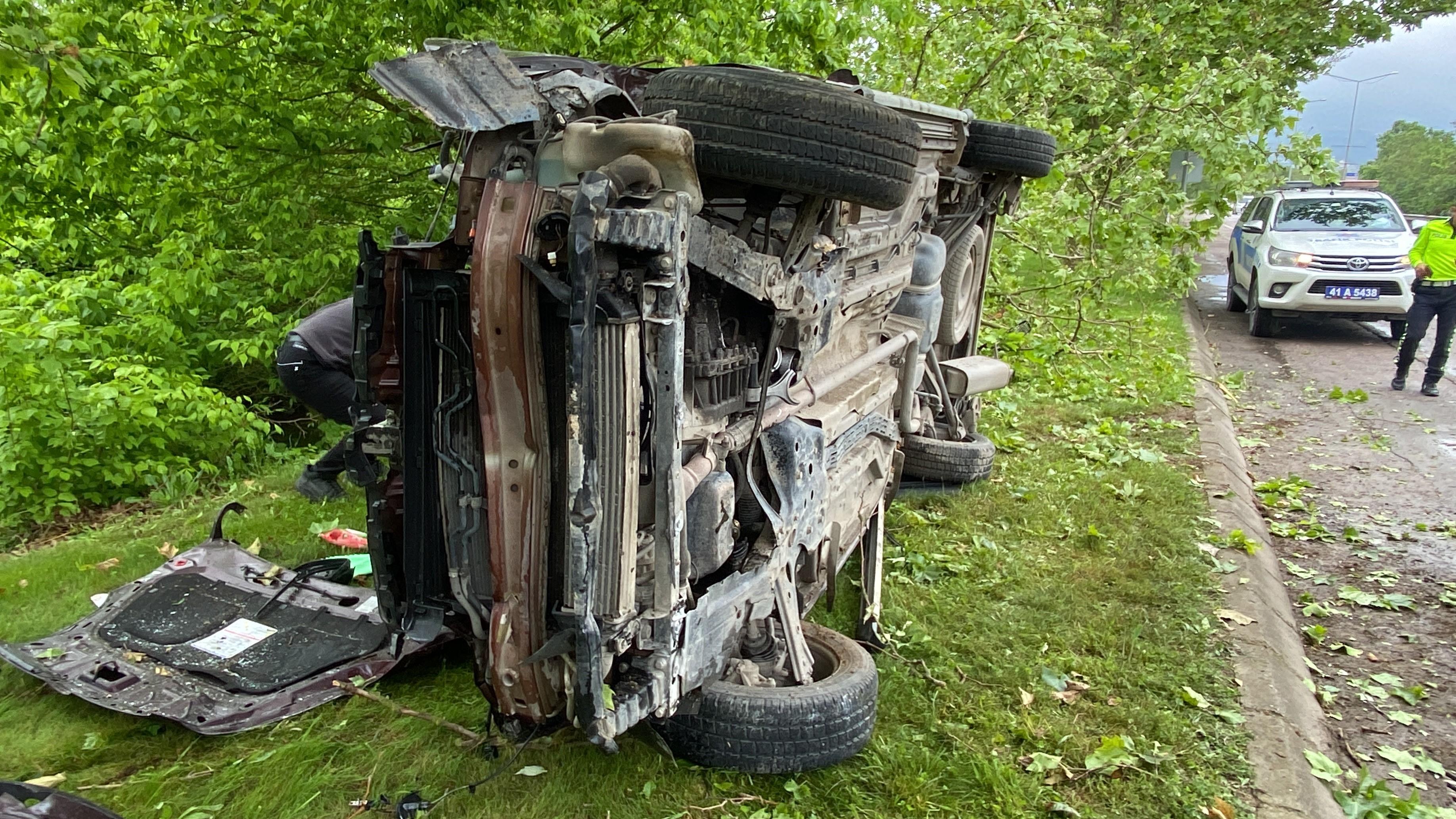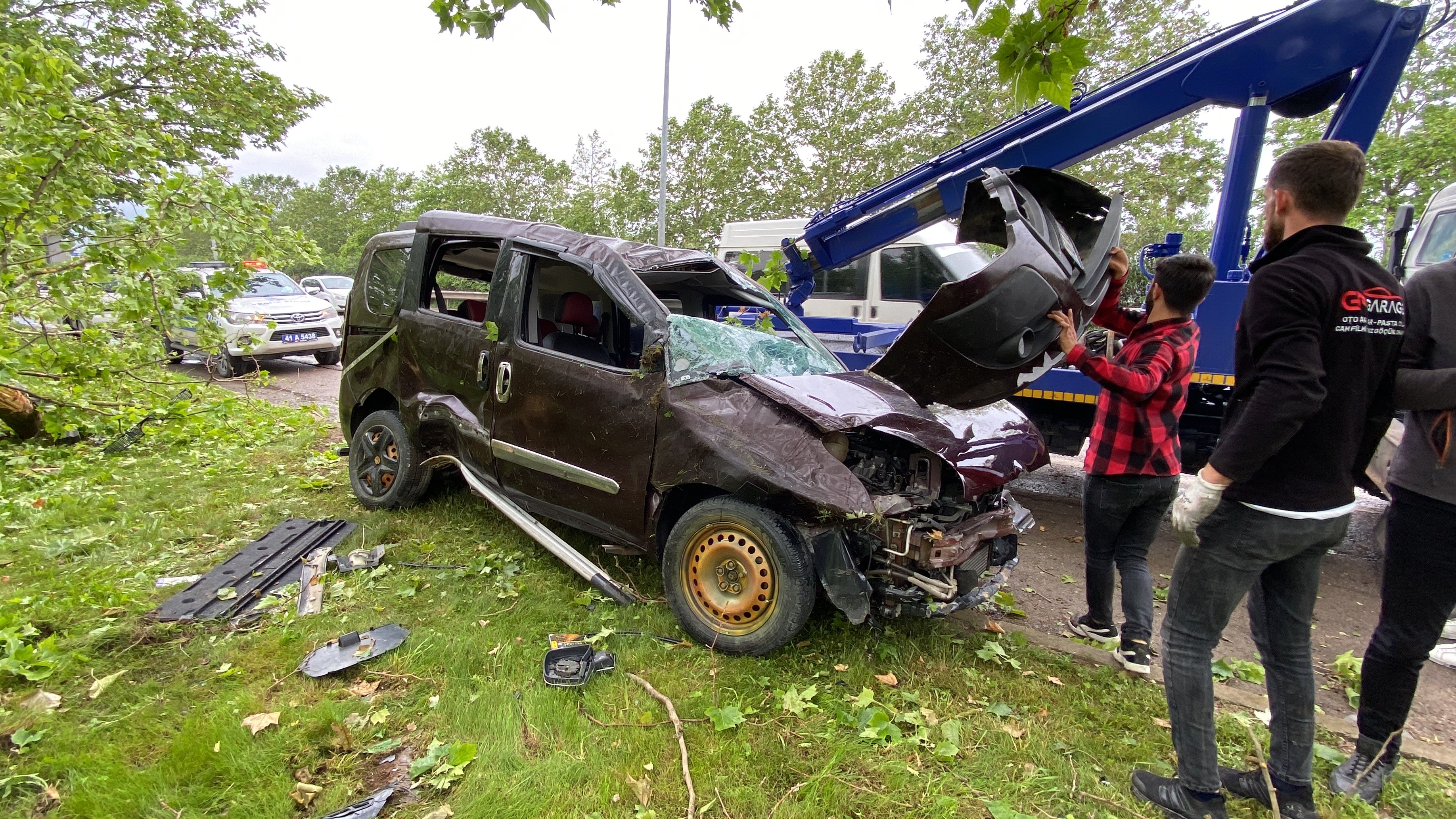 Kocaeli'nin İzmit ilçesinde yol kenarındaki ağaca çarpan hafif ticari araç ağaçlık alanda yan yatarak durabildi. Kazada yaralanan sürücü hastaneye kaldırıldı.