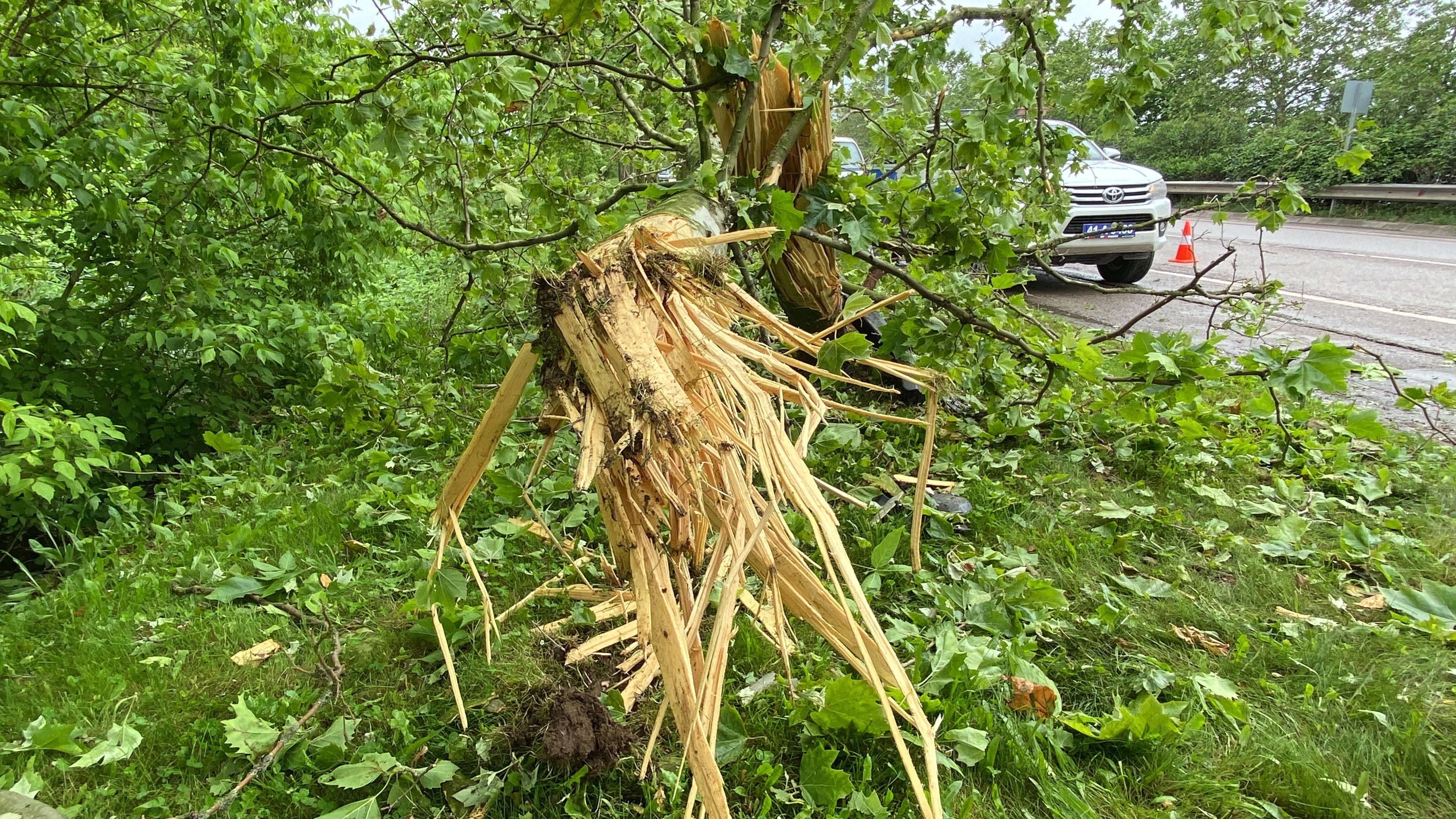 Ağaca çarpan araç yan yatarak durabildi