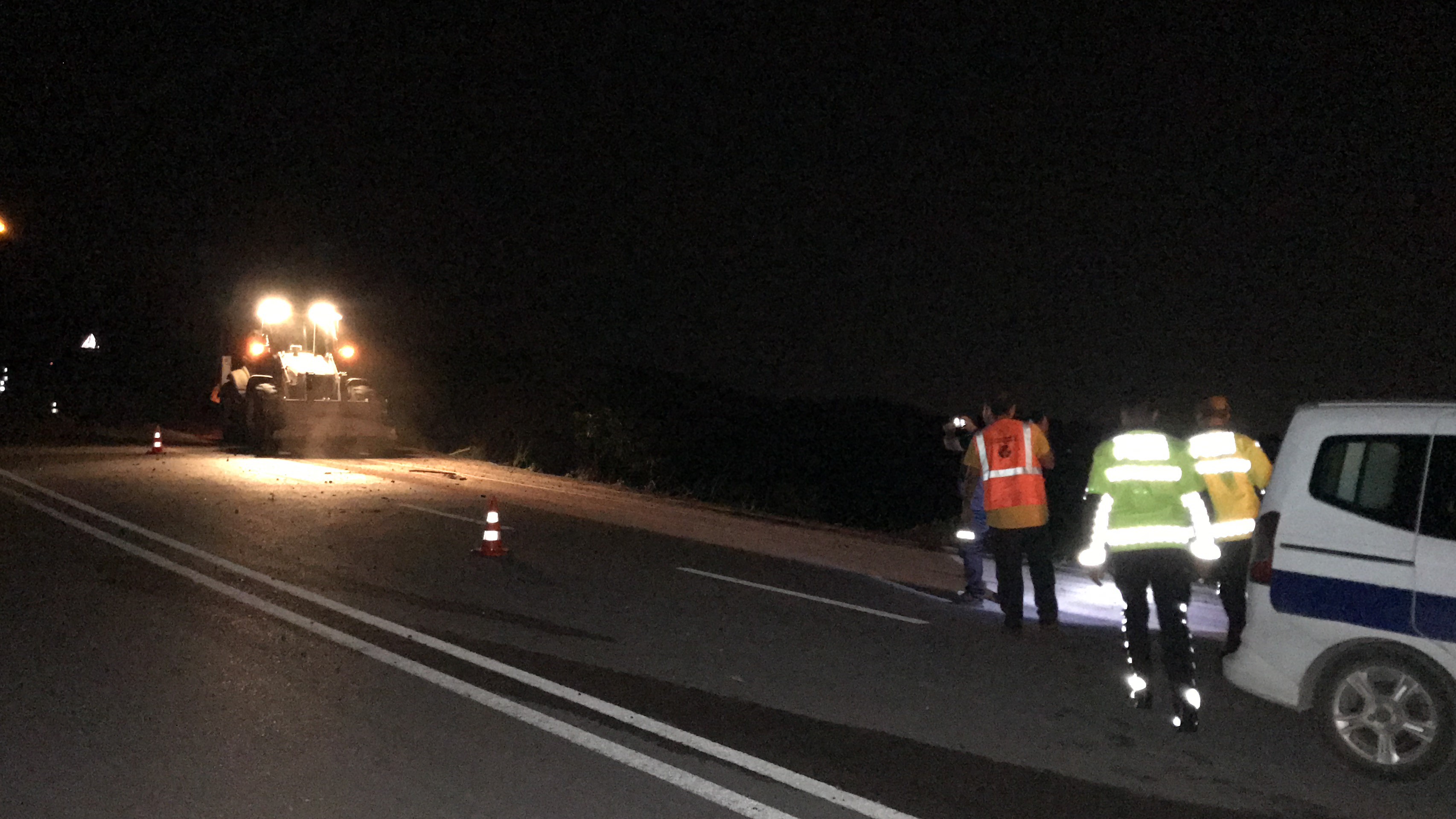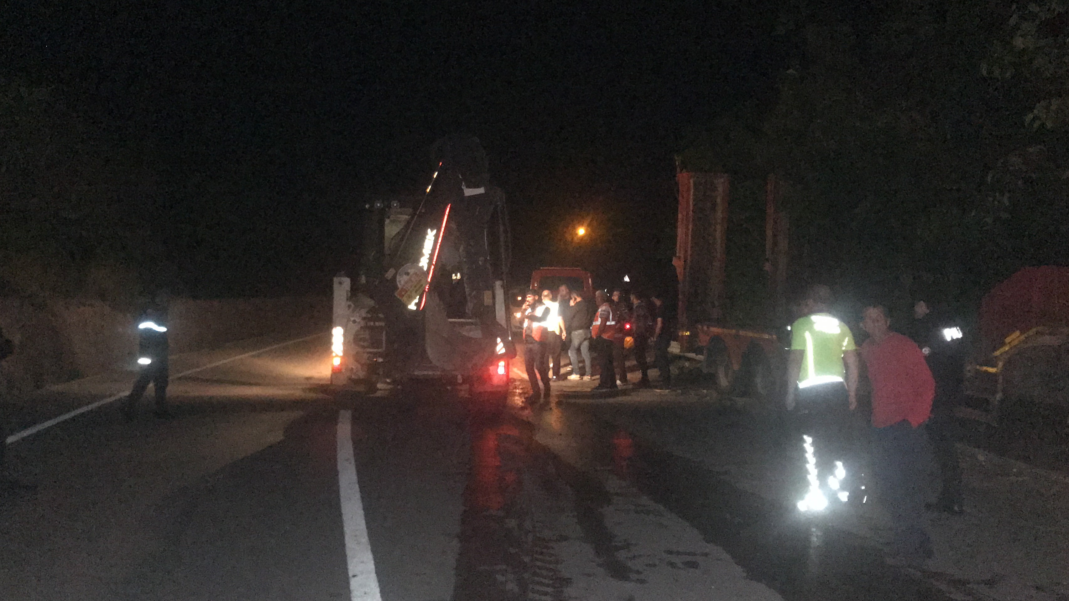 Tır bariyerlere çarptı, taşıdığı iş makineleri uçurumdan metrelerce aşağı uçtu