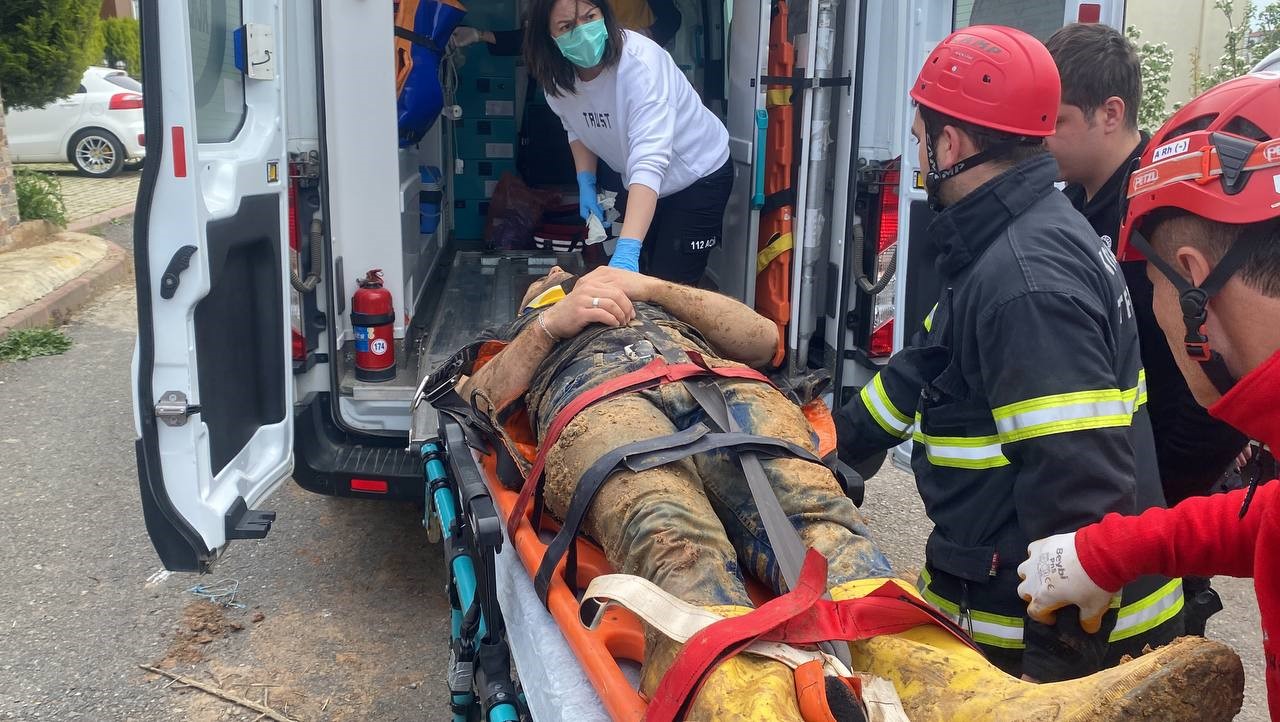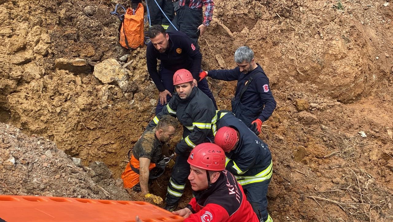 Kocaeli'nin Darıca ilçesinde inşaat çalışmaları sırasında bir işçi, çöken toprağın altında kaldı. Kurtarma ekipleri adeta zamanla yarışarak işçiyi toprak altından çıkardı.