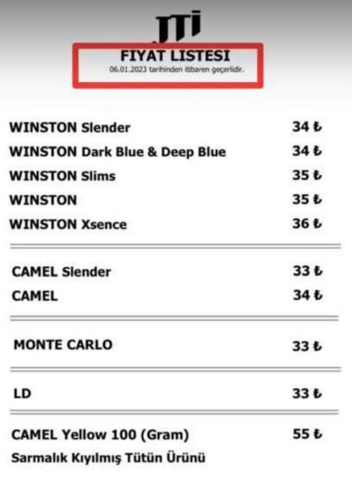 Diğer sigara markalarının zam yapmasının ardından JTİ grubu da sigara fiyatlarına zam yaptığını duyurdu. Yeni fiyatların ardından TT grubunda en ucuz sigaranın fiyatı 33 TL oldu. Yeni fiyatlar şu şekilde;