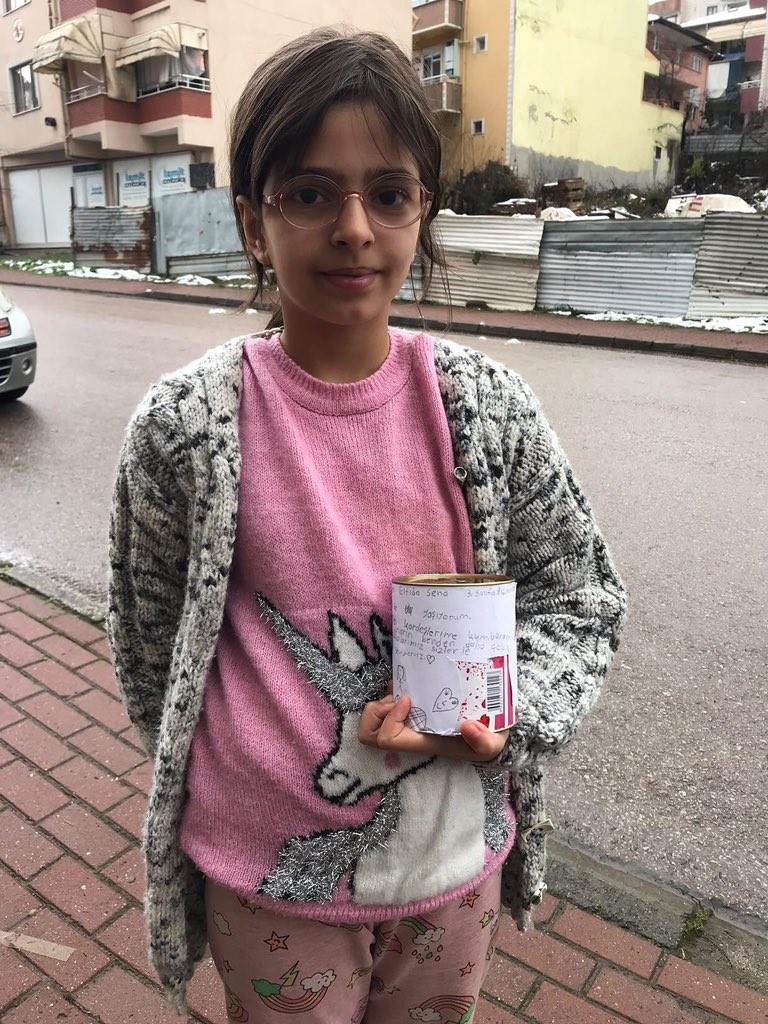 Kocaeli Büyükşehir Belediyesinin Kahramanmaraş merkezli depremlerin ardından afetzedeler için başlattığı yardım kampanyasına, 7'den 70'e tüm vatandaşlar ilgi gösteriyor. Kampanyaya destek olan Elfida isimli kız çocuğu, tablet almak için harçlıklarını biriktirdiği kumbarasını yardım toplama merkezine getirdi. İsminin Öykü olduğu öğrenilen bir başka çocuk ise hiç giymediği spor ayakkabısını, "Merhaba ben Öykü. Kendime aldığım yeni ayakkabıyı size hiç giymeden hediye ettim. Sizin her zaman yanınızdayım. Allah yardımcınız olsun. Sizi seviyorum" notuyla bağışladı.