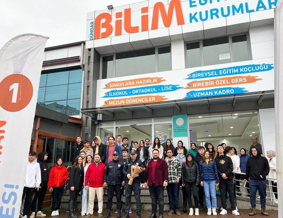 Kocaeli’nin İzmit ilçesinde kavga ihbarı üzerine yola koyulan polis ekipleri, vardıkları noktada büyük bir sürprizle karşılaştı. İhbar, Dündar Bilim Eğitim Kurumları tarafından verildi ve binanın önünde öğrencilerin kavgaya tutuştuğu söylendi. Olay yerine sirenleri açarak hızlı bir şekilde ulaşan polis ekipleri geldiği esnada ise düzmece kavga sona erdi. Kavganın yerini alkışlar, meşaleler ve konfetiler aldı. Kısa süreli şoke olan polis ekipleri daha sonra araçtan inerek kuruma ve öğrencilere teşekkür etti. Polis Haftası’nı böyle bir sürprizle kutlayan kurum ve öğrenciler, polis ekiplerine çiçek takdim etti. O anlar, saniye saniye kameralara yansıdı.