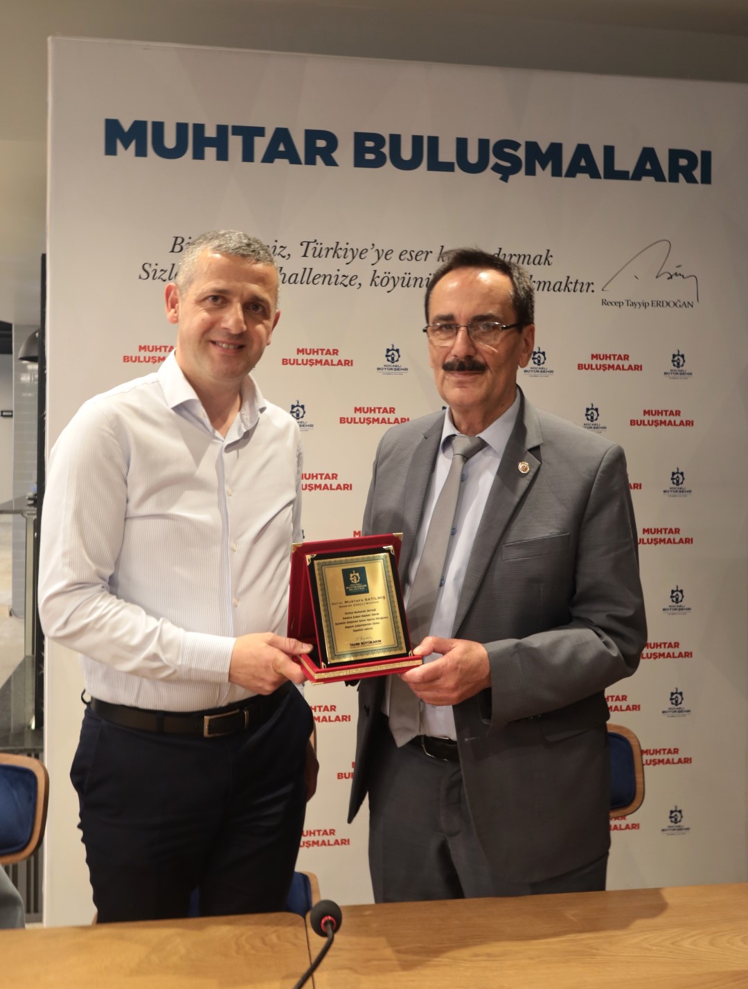 Türkiye Muhtarlar Derneği Kandıra Şube Başkanı olarak iki dönem görev yapan ve geçen ay gerçekleştirilen kongrede aday olmayan Çerçilli Mahalle Muhtarı Mustafa Satılmış’a hizmetlerinden dolayı Başkan Tahir Büyükakın’ın teşekkür plaketi takdim edildi. Türkiye Muhtarlar Derneği Kandıra Şube Başkanlığına, Kandıra Çakırcaali Mahalle Muhtarı Adnan Kaçan seçilmişti.