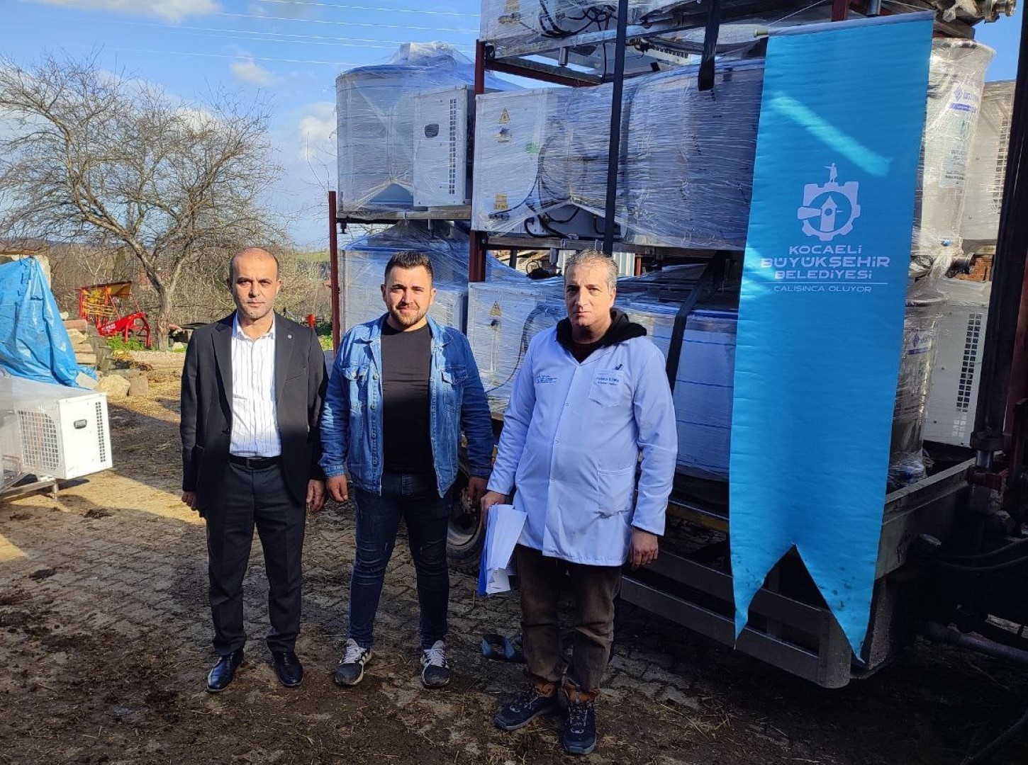Süt tanklarını teslim üreticiler, destekten dolayı memnuniyetlerini dile getirerek, Kocaeli Büyükşehir Belediye Başkanı Tahir Büyükakın’a teşekkür ediyor.